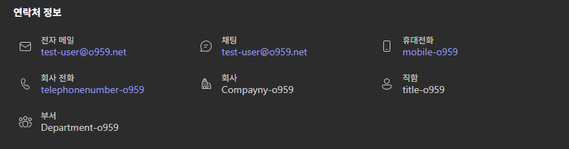 Teams의 연락처 카드에 표시되는 정보가 Entra ID의 계정 속성 값을 이용해서 표시해주고 있는데