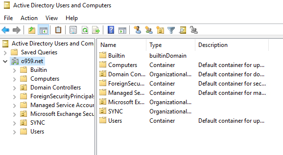 AD에 도메인은 o959.net 하나의 도메인만 등록이 되어 있는 상태에요.