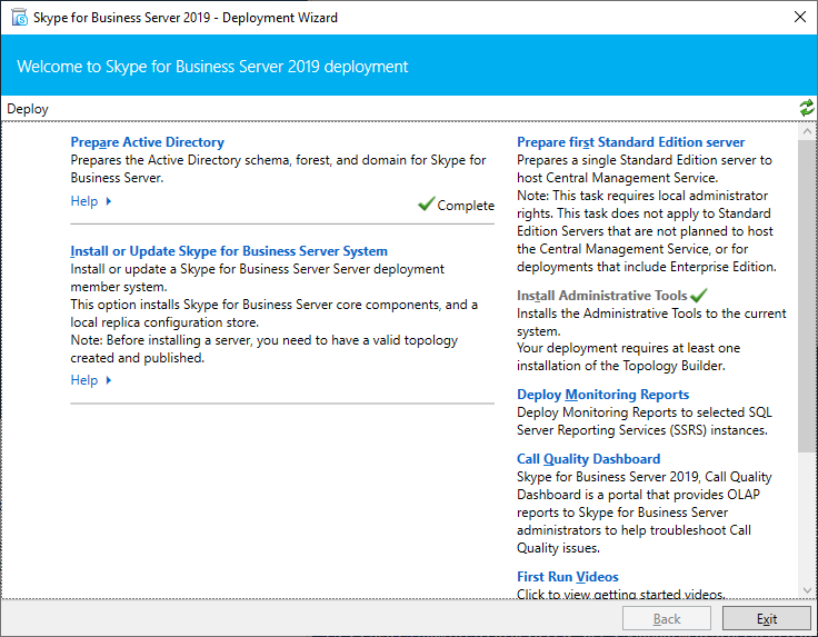 Skype For Business DeployMent WIzard를 실행 - Install or Update Skype For Business Server System 클릭