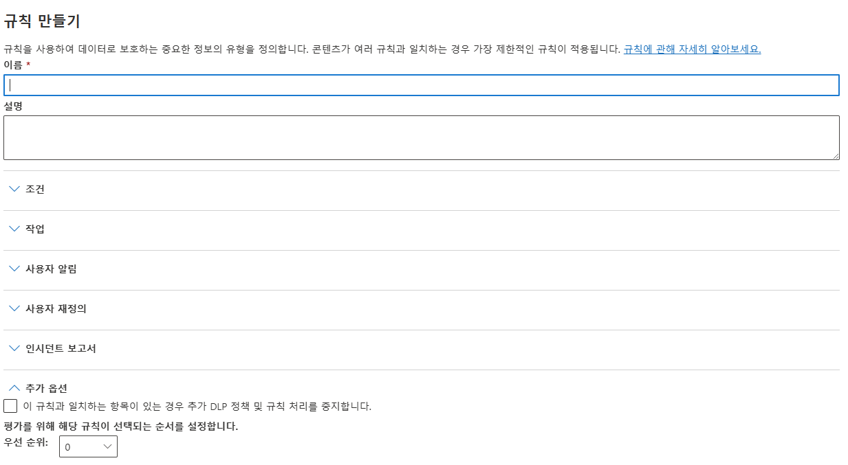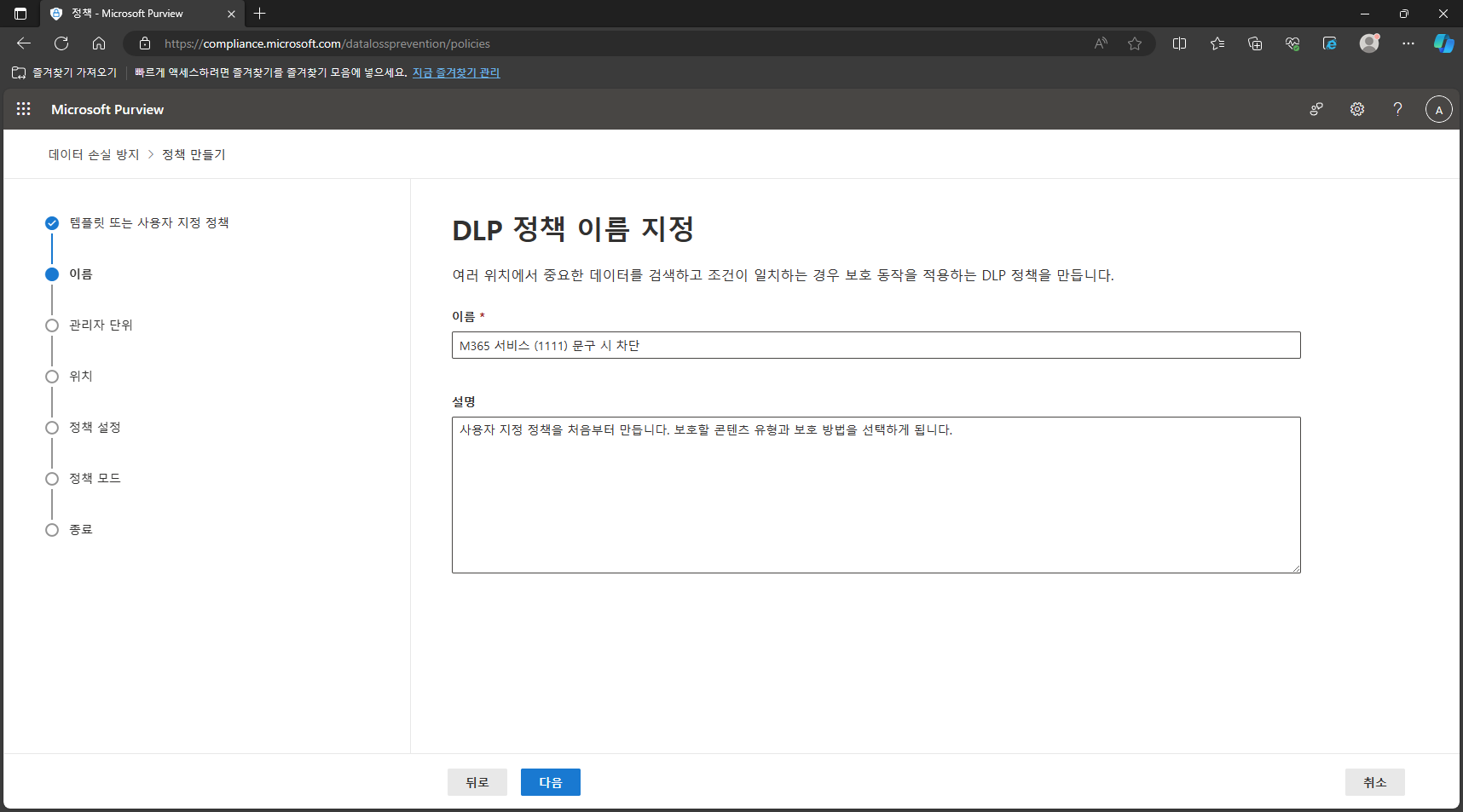 [데이터 손실 방지] - [정책] - [정책 만들기] 클릭해주세요