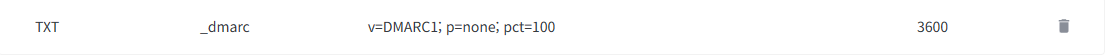 _dmarc.domain TTL IN TXT "v=DMARC1; p=policy; pct=100"