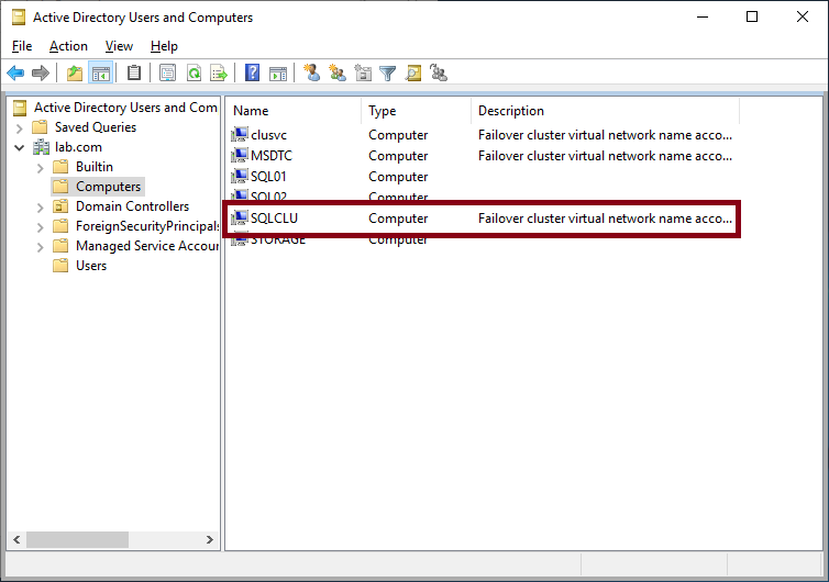 SQL Cluster Failover 구성 확인