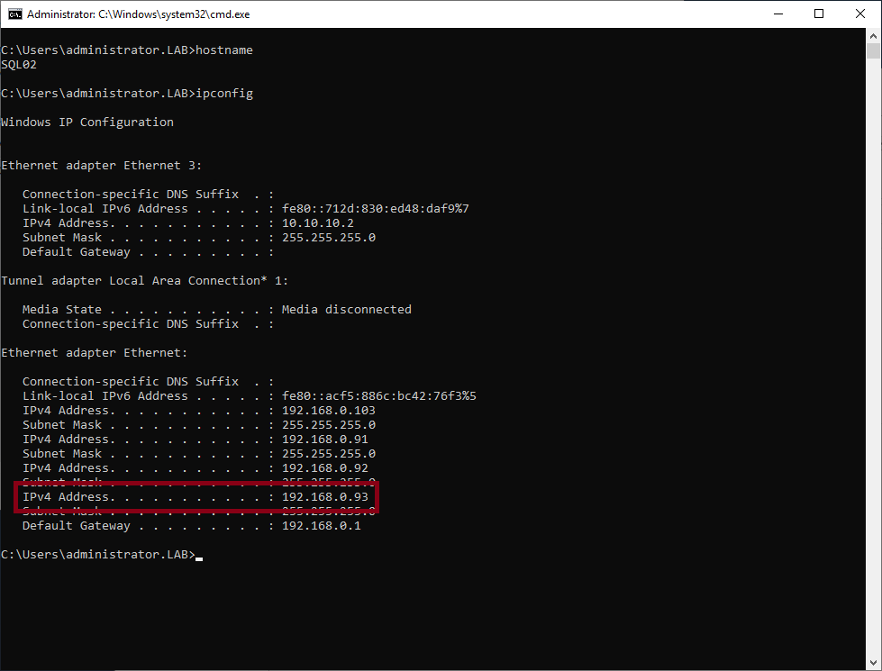 클러스터 관리자에서는 아래와 같이 SQLcluster의 IP를 확인 할 수 있어요
