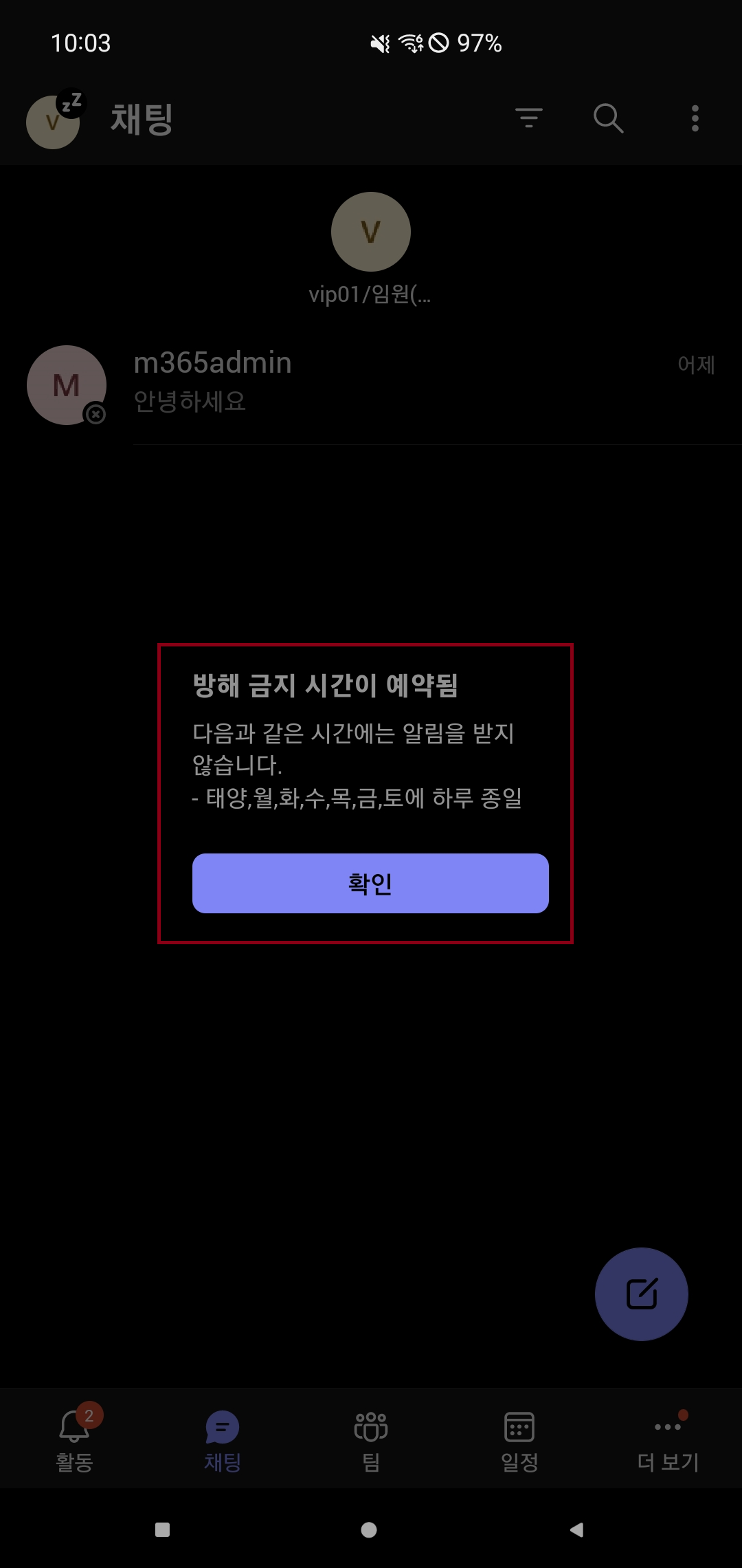 업무 시간 이후 Teams로 업무 관련된 채팅을 받기 싫거나